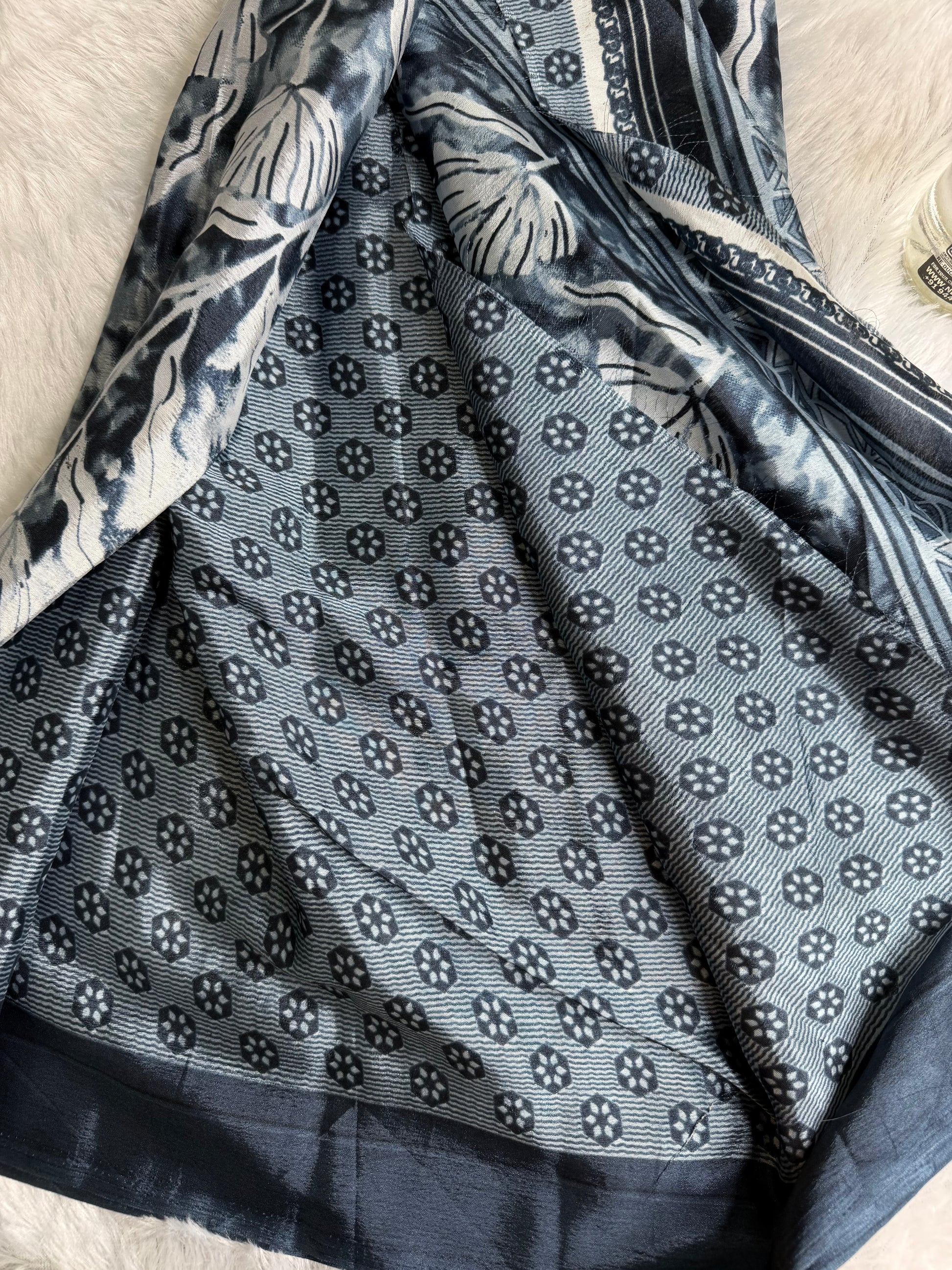 Soft crepe silk saree with printed design, smooth texture, and comfortable drape, suitable for regular and casual wear.