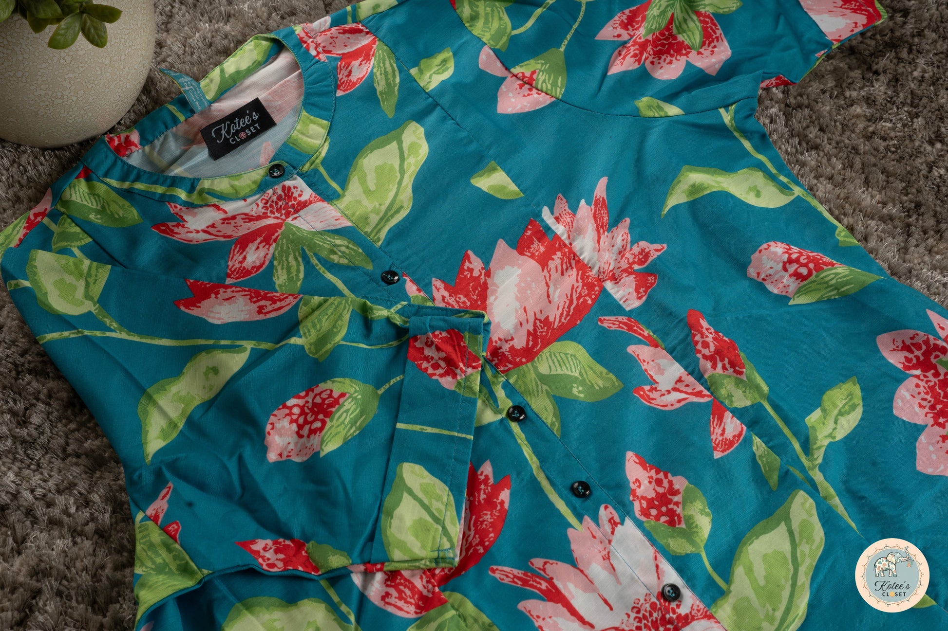 Bright, breezy, and beautifully vibrant—this pure cotton coord set is designed for effortless everyday comfort. The stunning multicolor floral print over a fresh turquoise base adds a lively and refreshing touch to your wardrobe. Featuring a button-down top with a round neckline and matching printed bottoms, this set offers both style and ease. Lightweight, breathable, and perfect for casual outings, home wear, or summer days.